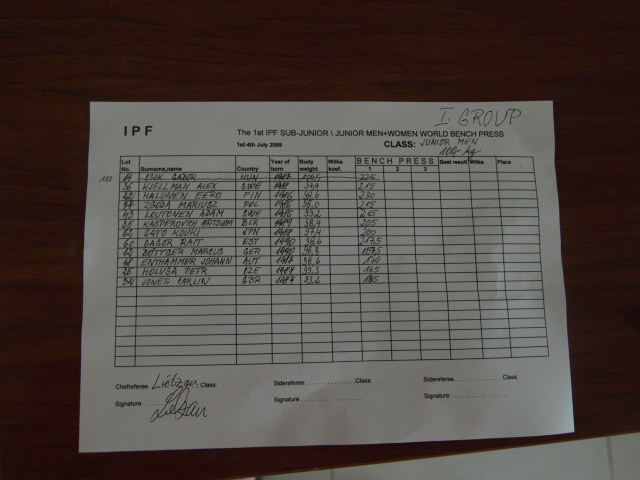 ära. 192,5kg tuli samuti ülesse aga poolepeal käis jõnks läbi ja seega vastu ei võetud. edasi panime 200 kuna see oleks andnud minule pronks medali..olin valmis,tahtmist oli jõudu tundus ka olevat aga lõpus tuli kang näopeale ja ei jaksanud…teravust oli puudu ja järelikult ei pigistanud piisavalt kangi. Veel seda ka et soojendusruumis oli väga palav.