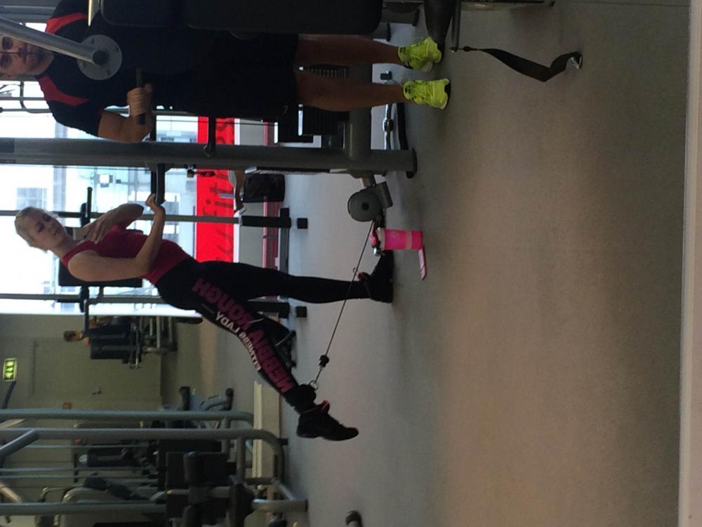 А еще вчера была отличная тренировка с Кристиной. Вот все-таки когда сам, то немножечко себя жалеешь и частенько не добираешь веса. Мне вручили 2 гантели по 16кг. Если честно, я их от пола еле оторвала… Ноги сегодня болят и не только они. Начинаем работать по новой программе. Вот это я понимаю. )) будет нелегко, но я на все готова, лишь бы достичь результата.