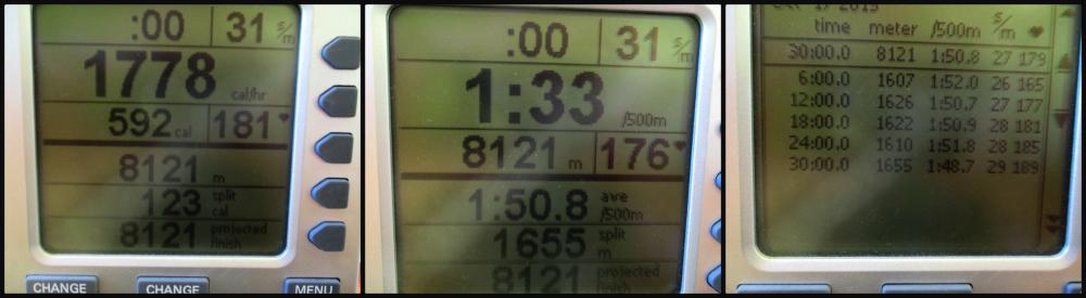 Tänane tulemus 8121 m. Kokku 4 x 30 minutit (7758 m + 7852 m + 7677 m + 8121 m = 31408 m). Nelja tõmbamise 30 minuti keskmine tuli kokku 7852 m. Mina täitsin sellega oma osa ära, kahju, et vastast ei olnud