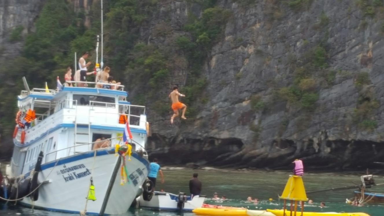 ” width=”20″ />. Edasi korjasime oma kodinad kokku ja sõitsime Krabile – see oli juba rahulikum kant – täpselt teisel pool lahte ja sinna võib sõita nii laeva kui autoga – viimasega siis päris korralik ring. Eelistasime laeva – mugav ja no merel on juba huvitavam ka ringi vaadata ja ilma nautida istudes laevatekil. Krabil on juba ka korralikumad rannad ja eriti ilus oli Raileys beach, mis on ca 10 min paadisõidu kaugusel Krabi rannast. Seal peatusime kom päeva ja tutvusime ümbrusega, edasi sõitsime Phi Phi saarele – ülipopulaarne koht ja väga ilus. Seal tasub kohapeal võtta päevakruiis, st. kaatrisõit päev otsa 7 tundi ja siis näeb ka ümberkaudsed väiksed saared ära. Sai nii snorgeldada, ujuda koos väiksemate haidega, käia ahvide rannal, uudistada planktoneid jne. Loodus on seal imeline ja pakub ikka korraliku wau efekti isegi kogenud rännumehele.
