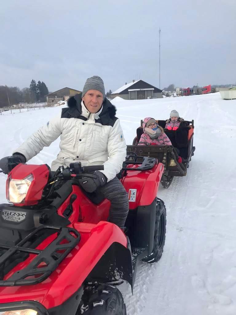 Meelelahutusliku poole täitsin nädalavahetusel Kuimetsas, kus käisin külas oma heal sõbral Juhan Laansool – kellega koos organiseerime Honda Spordikuulsuste jõuluturniiri. Juhanil on seal garaaz tehnikat täis ja nii sai sõita nii ATV kui selle järel olnud saaniga. Pean tunnistama, et ATV -ga oli erit mõnus samas oleval krossirajal sõita. Ohutuse mõttes proovisin, nö mitte üle panna ja lasin suht konservatiivselt – sest olen kuulnud paljudest õnnetustest ja seda kindlasti ei ole vaja ise esile kutsuda.Peale seda sõitsime veel tema tiigi peal uiskudega – Juhan ise +60, kuid uisutab paremini kui noored….võistleda, temaga selle ala peal polnud mõtet.