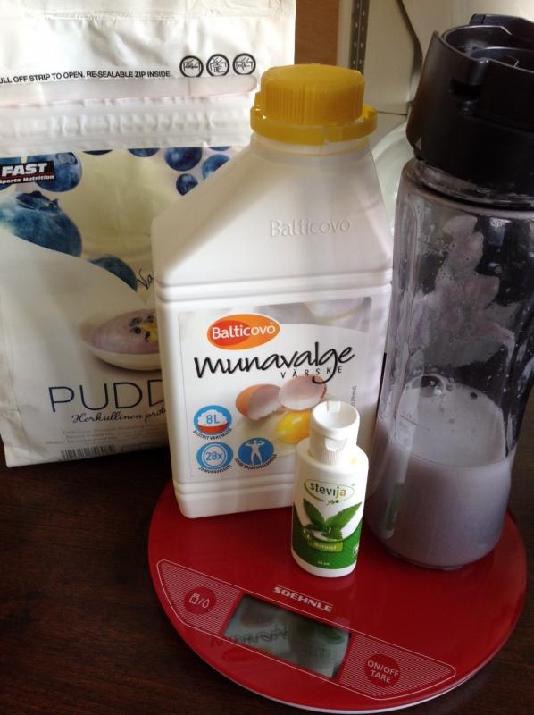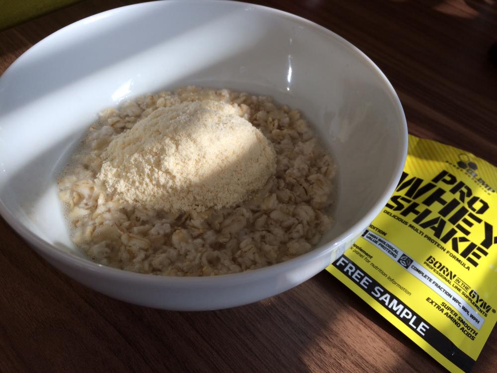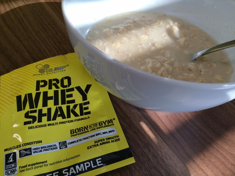 kui pudru oli paisunud,segasin hulka uue Cookies Cream maitselise Olimp Pro whey valgupulbri, mille näidise sain eile Fitshopist, ja lasin heal maitsta