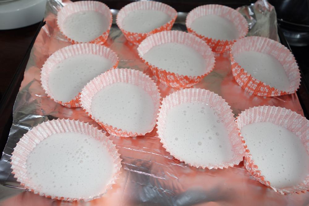 Põhjale tuleks peale kallata järgmine segu: ca 1200 ml keefirit segatuna 150 gr puddingu pulbriga ja 40 gr zelatiiniga ( zelatiin tuleks eelnevalt lahustada väheses soojas vees). Selleks, et kook tuleks vähe magusam võib lisada ka loodusliku suhkruasendajat steviat Cocovi-l on see olemas pulbrikujul ja sellega tuleks olla ettevaatlik, sest tillukesest kogusest juba piisab.
