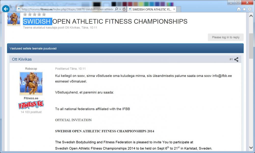 viinamarjavirre Profiil Topics Started Replies Created Engagements Favorites Search replies: Forum Replies Created Viewing 7 posts - 1 through 7 (of 7 total) Autor Postitused juuli 24, 2014 at 8:22 p.l. in reply to: SWEDISH OPEN ATHLETIC FITNESS CHAMPIONSHIPS #368964 viinamarjavirreMember S w i i t i s h ? ” srcset=”/uploads/emoticons/smile@2x.png 2x” width=”20″ height=”20″> http://www.upload.ee/image/4173221/ott_kiivikas_swiidish.jpg juuli 18, 2014 at 7:25 p.l. in reply to: SKG transformation journey #368782 viinamarjavirreMember Milleks sellist jama ajada? Võiksid proovida põhjendada, mis on jama sinu arvates. juuli 15, 2014 at 6:19 p.l. in reply to: Massilisamine #368619 viinamarjavirreMember Milliseid nad siis ei treeni? Keskmisi kõhulihaseid? Arnoldi kavadest on näha, milliseid ei treeni. (Selle Arnoldi, kes steroide ainult tarvitas, muud nendega ei teinud.) juuli 15, 2014 at 6:14 p.l. in reply to: Massilisamine #368617 viinamarjavirreMember Fullbodi kavad ei treeni kogu keha, vaid lihtsalt teevad valikuliselt suurema osa lihaseid. juuli 14, 2014 at 7:03 p.l. in reply to: Fit.Camp 15-24.juuli 2016 – Otsereportaaz! #368556 viinamarjavirreMember juuli 14, 2014 at 5:54 p.l. in reply to: Fit.Camp 15-24.juuli 2016 – Otsereportaaz! #368554 viinamarjavirreMember Jee, sööma!! Kusjuures, söögid on ÜLIMAITSVAD!!! Muna, leib ja piim tunduvad kõige maitsvamad. Mnjaa, veab teil. juuli 14, 2014 at 4:18 p.l. in reply to: Fit.Camp 15-24.juuli 2016 – Otsereportaaz! #368548 viinamarjavirreMember Kas ka taimetoitlaste peale on mõeldud? Autor Postitused Viewing 7 posts - 1 through 7 (of 7 total)