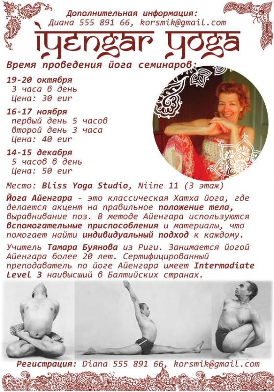 19-20 октября состоится двух дневный семинар по Йоге Айенгар каждый день по 3 часа тренировок. К нам снова приедет сертифицированный и опытный учитель из Риги. Более 20 лет опыта в йоге. Семинар проходит на русском и английском языках.