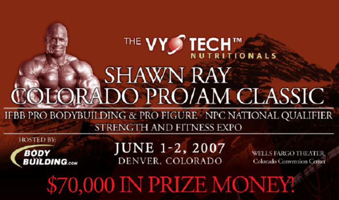 Shawn Ray is promoting, for the second year in a row, the IFBB Colorado Pro Show, to be held in Denver, Colorado, on June 1st and 2nd in conjunction a number of other events, including an NPC National Qualifier event, and a Strength and Fitness Expo. Here is a tentative list on who is scheduled to compete at the pro shows.