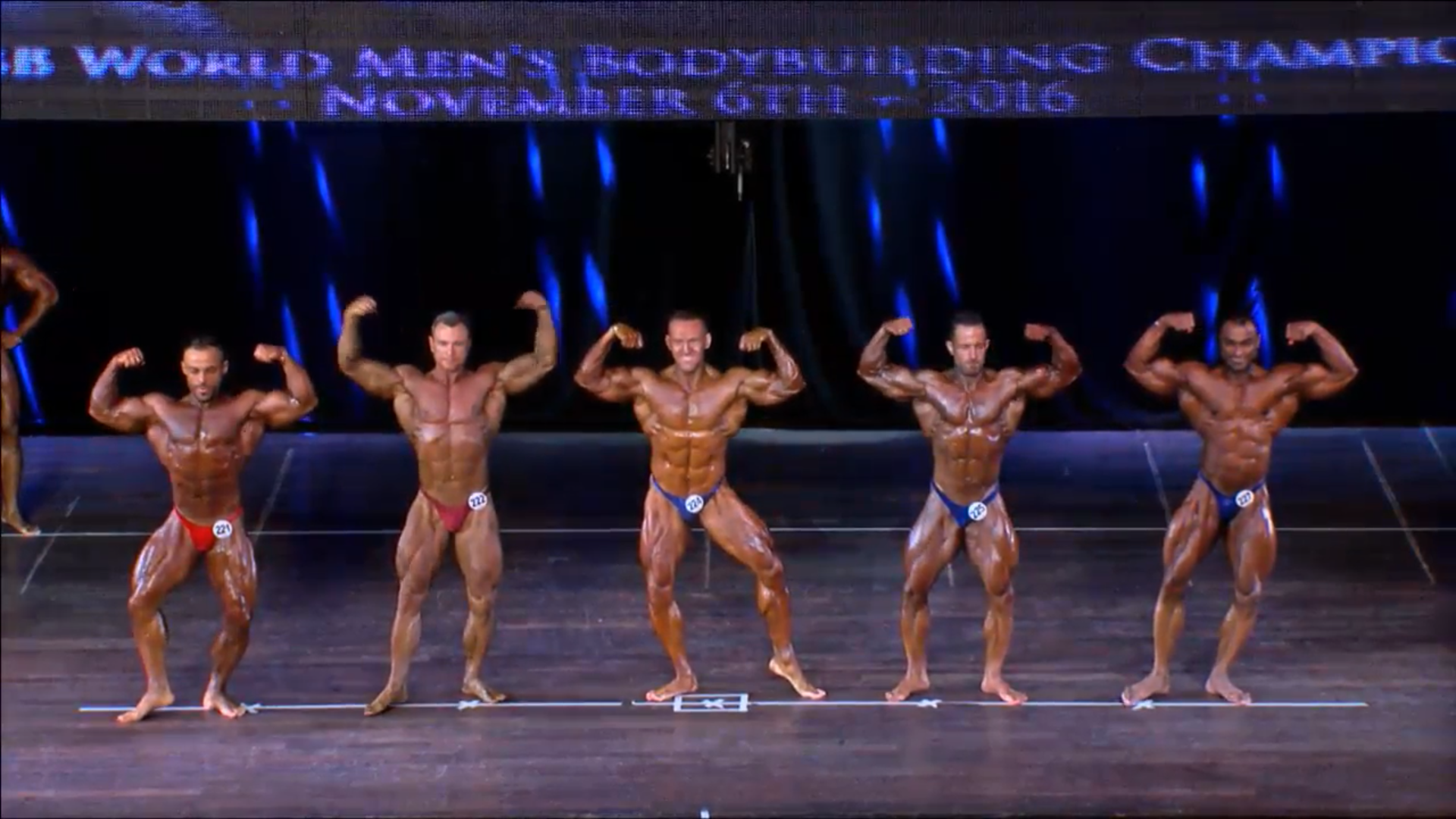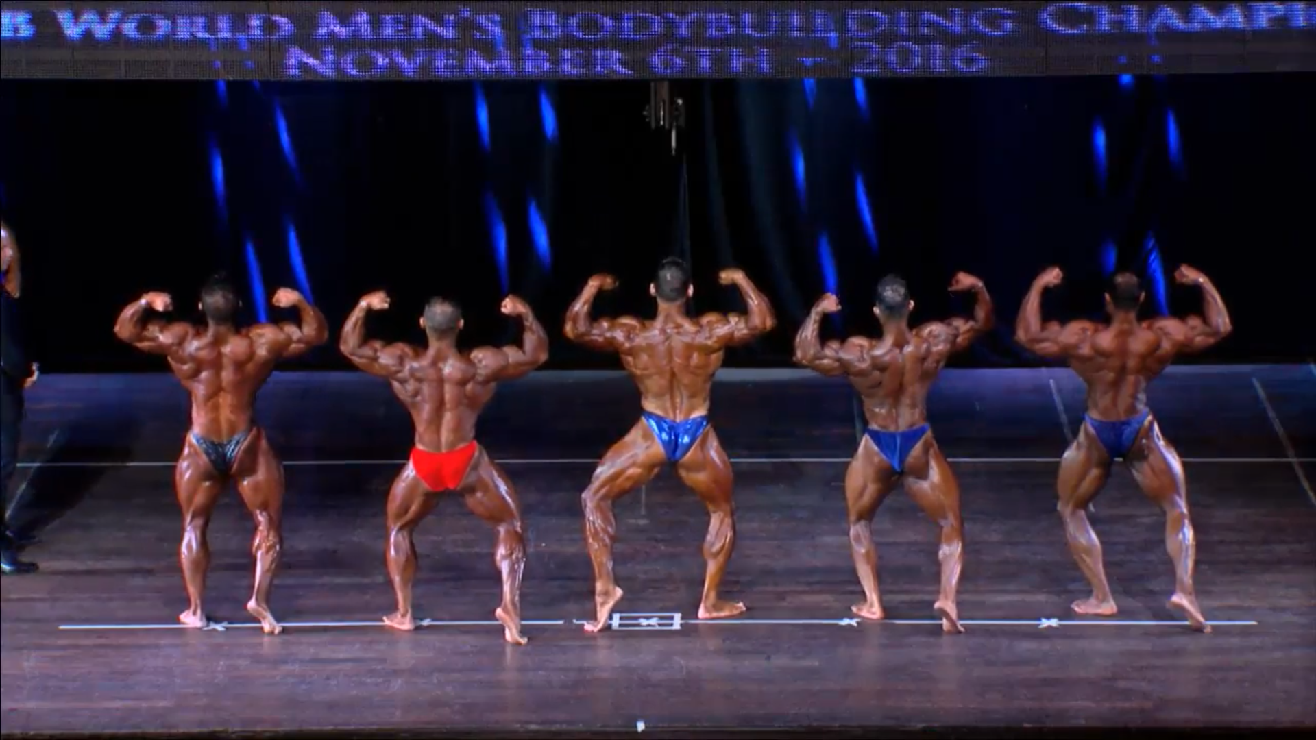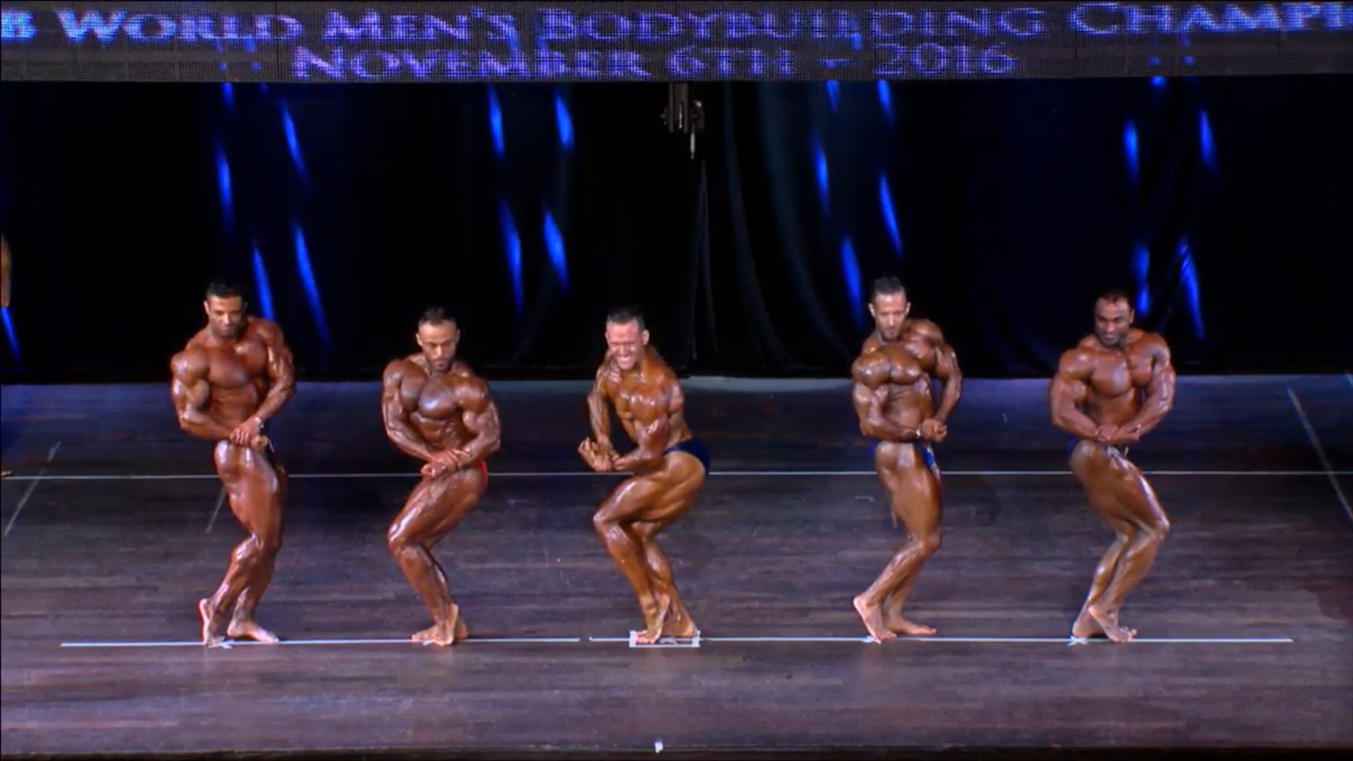 (4 Compulsory Poses in groups of 5, Comparisons) > List of the Finalists backstage8. Men Bodybuilding up to 90 kg Semifinals Round 1