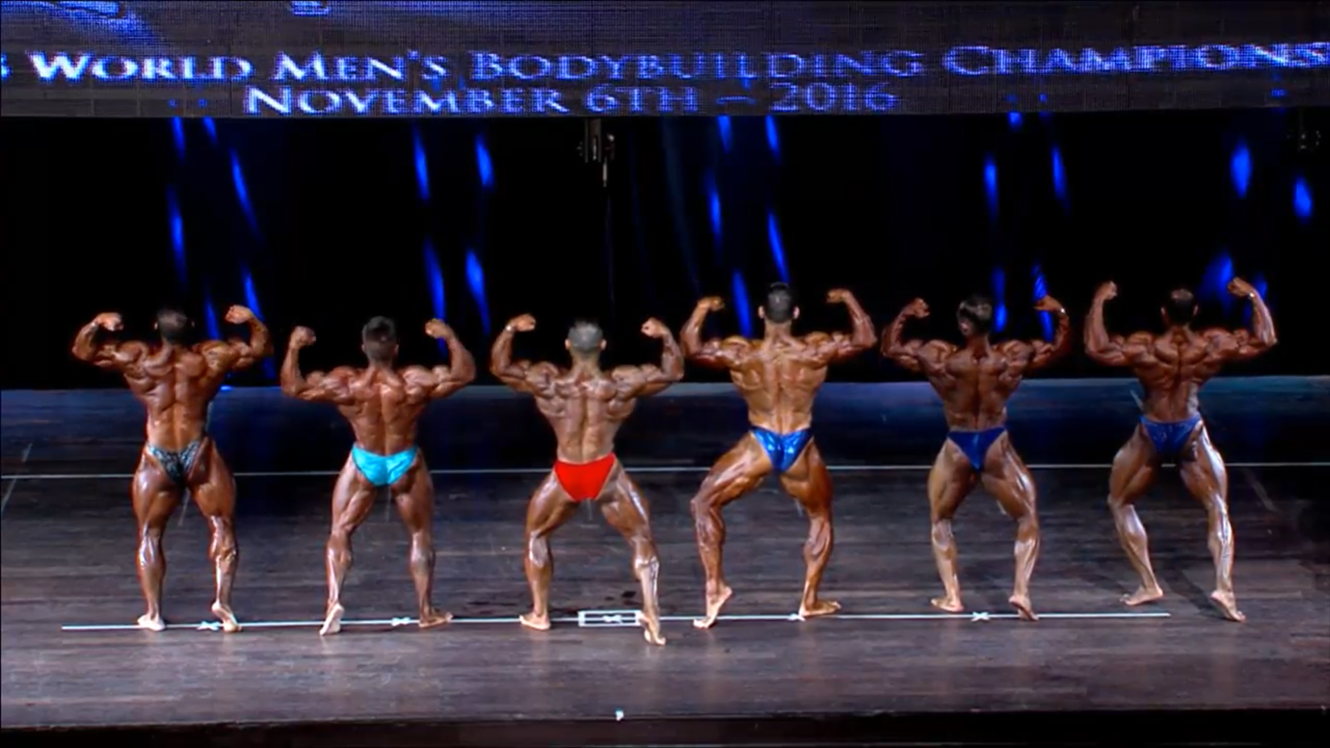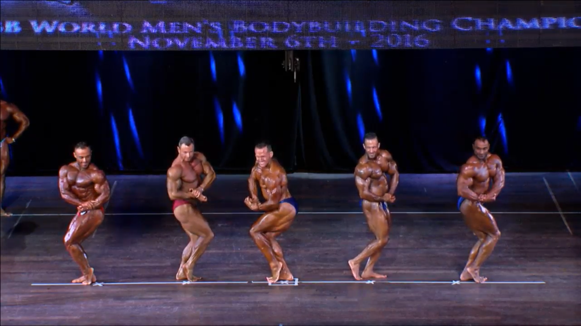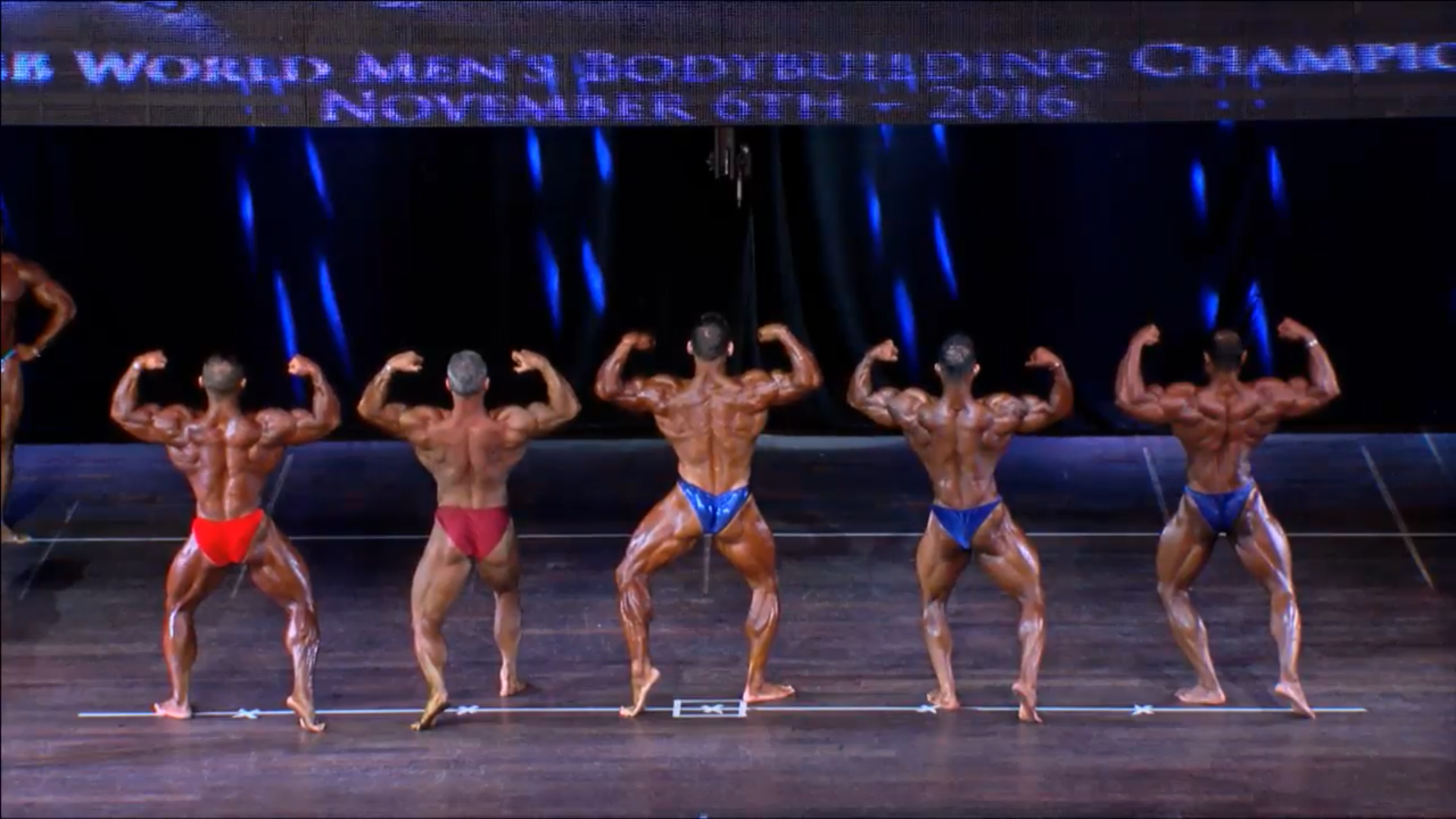(4 Compulsory Poses in groups of 5, Comparisons) > List of the Finalists backstage8. Men Bodybuilding up to 90 kg Semifinals Round 1