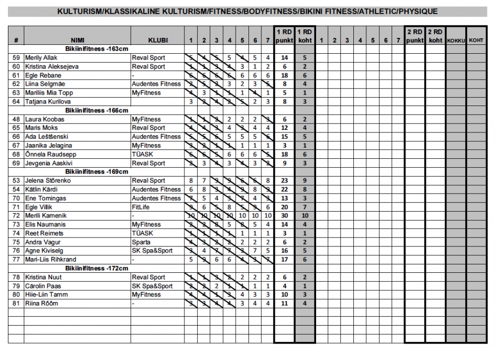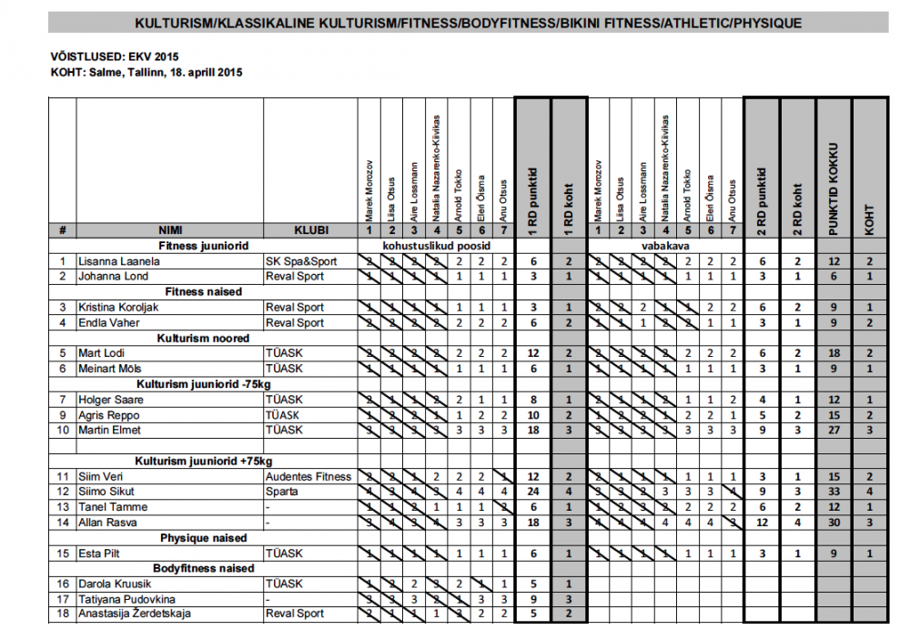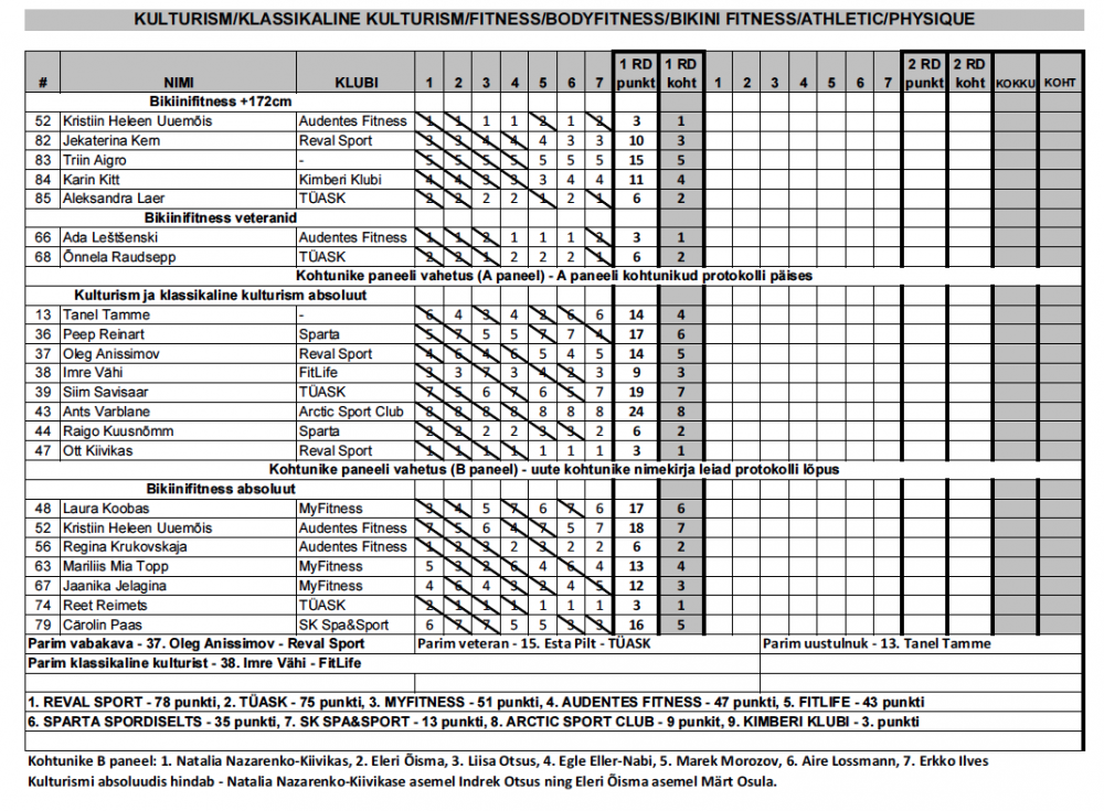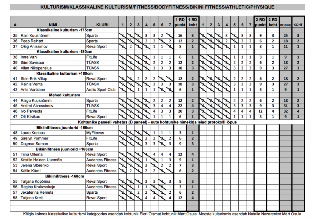31.EKV kulturismis ja fitnessis – TULEMUSED