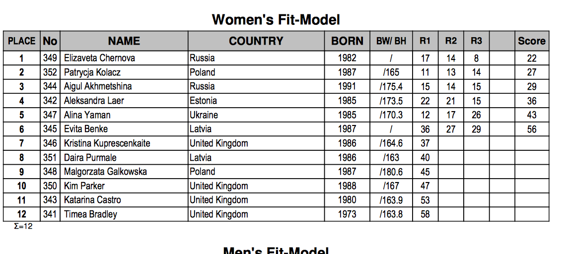AC AMATEUR tour 2016- Ott HÕBE, Aleksandra neljas, Jaanika viies Avaleht » Forums » International » Võistlused / Events » AC AMATEUR tour 2016- Ott HÕBE, Aleksandra neljas, Jaanika viies This topic has 92 replies, 9 voices, and was last updated 9 years, 4 months tagasi by Reinart. Viewing 3 posts - 91 through 93 (of 93 total) ← 1 2 3 … 5 6 7 Autor Postitused september 26, 2016 at 8:02 e.l. #388356 kaido leesmannMember Palju õnne Ott!! Loodame et varsti (MM-il) tuleb ka see täispauk! september 26, 2016 at 6:18 p.l. #388368 ReinartMember Täna saabus kodumaale prestiižikalt Arnold Classic võistlustelt, hõbedase autasuga, Ott Kiivikas. Lennujaamas juba õnnitlejatest puudu ei tulnud. september 27, 2016 at 6:28 e.l. #388372 ReinartMember Kogu võistluste protokoll http://www.ifbb.com/wp-content/uploads/2016/09/ACE-Barcelona-2016-Resuts.pdf Ott kindlalt teine Andra kategooria Jaanikat jääb teisest kohast lahutama vaid 3 punkti Aleksandra Autor Postitused Viewing 3 posts - 91 through 93 (of 93 total) ← 1 2 3 … 5 6 7 You must be logged in to reply to this topic. Logi sisse Kasutajanimi: Parool: Keep me signed in Logi sisse