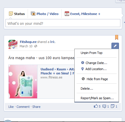 • Tõstab kampaania Facebooki ülesse, võtab vana uudise edit->unpin ja uuele panem edit-> pin to top