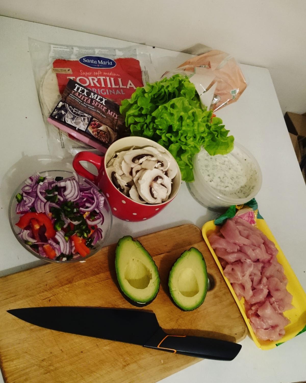 1 ICA I love Eco kakao 10 Munavalge. Balticovo 130 Laima 90% šokolaad 16 Helbed Kaera nisukliidega. Nordic 50 Kohv 200 Hera80 Fast shokolaadi 25 Nutella kreem 15 Juust Eesti Juust. Valio 5 Omega3 Lemon. Lysi 2 2 Täisteracroissant 70 Meridian coconut ja peanut butter 15 Jacobs 3in1 15 Grabover kisses 30 Nesquik helbed 20 Krisprolls wholegrain complet 16 3 Skyr shoko-vanilje 170 Kookosküpsis 20 4 Santa Maria original tortilla 40 Kanafilee jahutatud. Tallegg 170 Rainbow Tex Mexican Fajita Spice Mix 10 Paprika 50 Šampinjonid värsked 100 Bulgaaria jogurt 40 Lehtsalat 30 Mugulsibul 30 Avokaado 50 Sain oma menüüsse mahutatud nii Nutella, croissant-i, Jacobsi 3in1 suhkrupommi, neegrimusi kommid, Nesquik helbed, kookosküpsise… Ja sealjuures mahtusin 1900kcal sisse! Õhtul tegin endale ja noormehele liharikkaid kanawrappe: