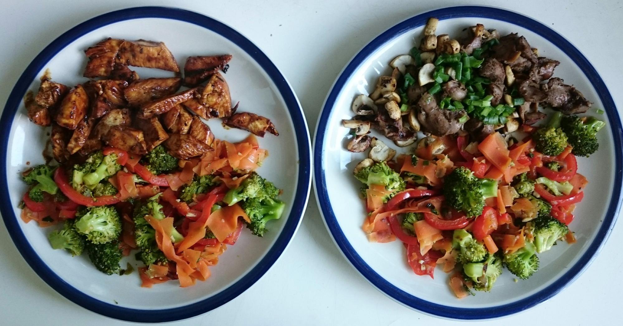 Köögiviljawok, mehele kõrvale mee-sinepikana ja mulle seened, sibul, kanapugu