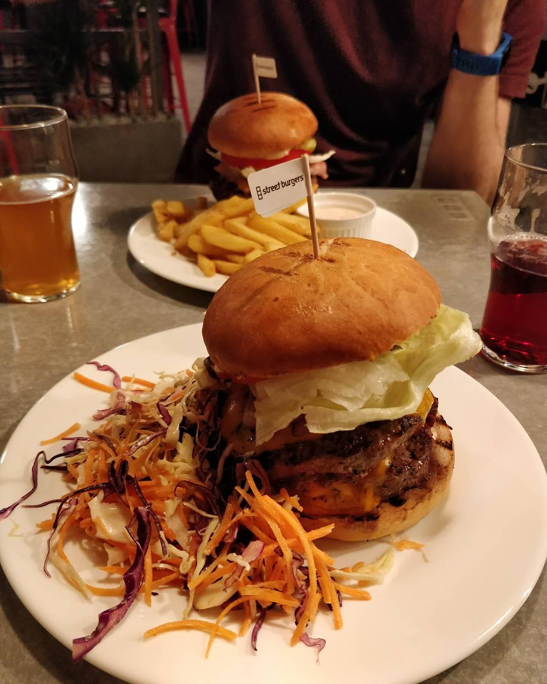 Tähistamiseks suundusime sellisesse toredasse kohta nagu Street Burgers, kus valisime mõlemad topeltburgeri, mille kõrvale pakuti friikartuleid ja coleslaw salatit. Lisaks muidugi ka kauaoodatud õlu!