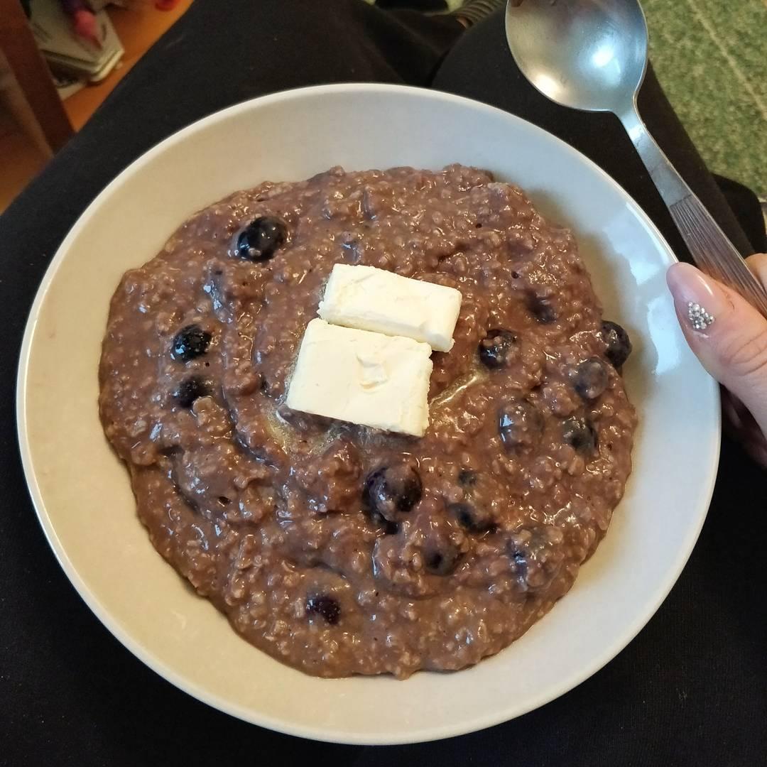 Hommikusöök – puder kakao, mustikate ja võiga