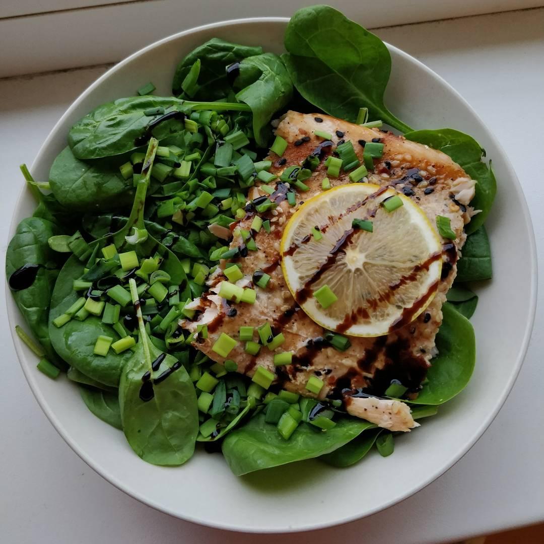 Lõunasöök – ahjus küpsetatud Teriyaki lõhe ja spinatisalat (jumalik lõhe!)