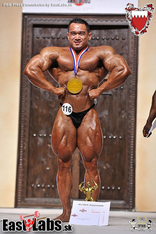 The champ of 2013 Mamdouh Elssbiay stepped on stage as well http://www.eastlabs.sk/fotogaleria/2013-amateur-mr-olympia-bahrain-manama/big-ramy
