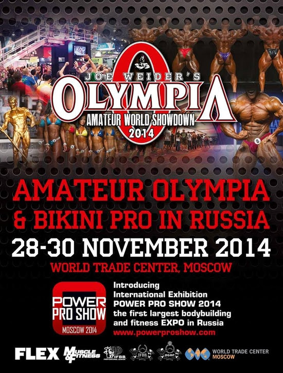 Bikini Pro Moscov toimub ühekoos Mr. Olympia Amateur võistlustega Power Pro Show 2014 raames.