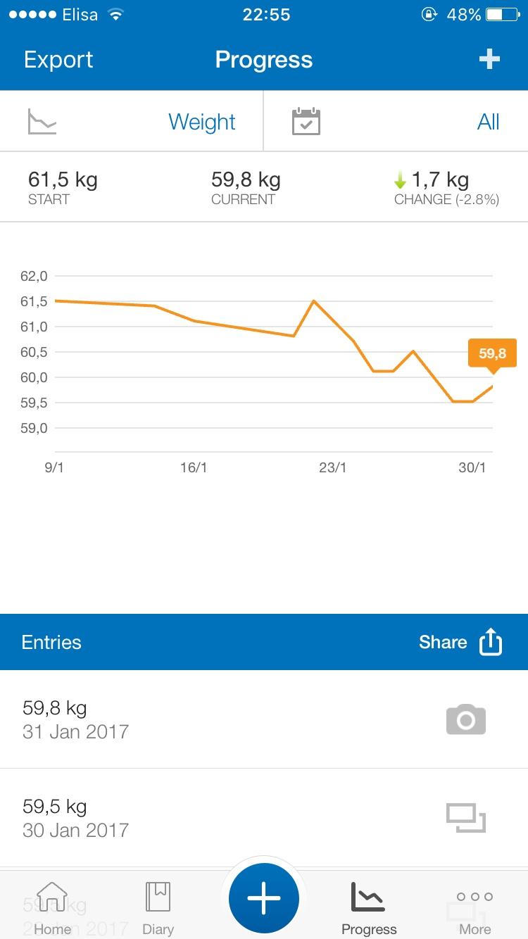 Alustame siis positiivsete uudistega ja hõiskan kohe, et kaalunumber on lõpuks hakanud minuga koostööd tegema<img decoding=” data-emoticon=”” height=”20″ src=”/uploads/emoticons/default_tongue.png” srcset=”/uploads/emoticons/tongue@2x.png 2x” title=”:P” width=”20″ />. Ei liigu küll sirge kõverana alla, aga näen, et üldpildis liigub ja kiiret ei ole. Hetkel suudan seda kaaluteemat kuidagi kergemalt võtta ja ei ole erilist paanikat tekitanud, kui mõni hommik kaalunumber jälle maagiliselt suurem on kui eelneval hommikul. Tean, et see sõltub nii paljudest eri asjadest ja pole mõtet sellest küll lisastressi tekitada. Eriti, kui tean, et olen korralikult kõike jälginud ja tublisti trenni teinud, siis pole ju millegipärast muretseda ka <img decoding=” data-emoticon=”” height=”20″ src=”/uploads/emoticons/default_smile.png” srcset=”/uploads/emoticons/smile@2x.png 2x” title=”:)” width=”20″ />