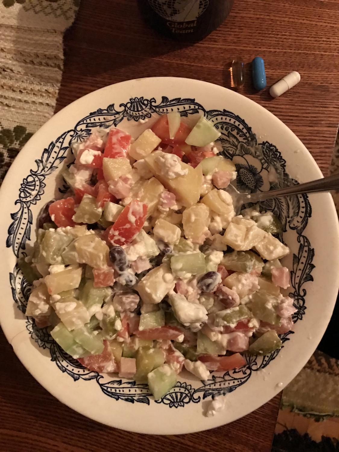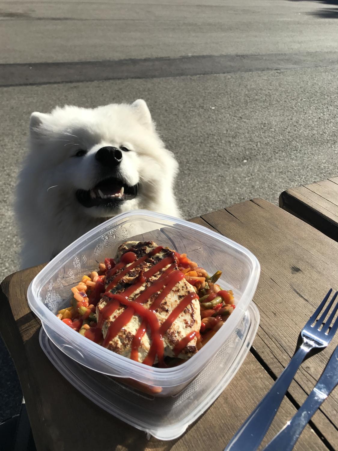 ” width=”20″ /> Andsin vanaemale seekord juba ette teada, et ta MITTE MIDAGI ette ise ei küpsetaks, et käes on jälle prepi aeg ja ma tulen oma toiduga. Mis te arvate, mis meid kohale jõudes laual ootasid? Soooojad kotletid ja kartulid… Eks ma siis nutt kurgus keerasin omale hoopis kartuli ja kodujuustuga mingi salati moodi asja kokku ja suutsingi kotletid puutumata jätta. Järgmisel päeval ootas juba praeliha ja erinevad pakkumised magustoitudele. Õnneks suutsin oma piisavalt valju häälega vanaemale selgeks teha, et ei tee ühtegi magustoitu ja magustoidu planeerimise asemel leidsime hoopis kuldse kesktee ja lubasin tal ühepajatoitu teha. Leidsin fitnesspalist sarnase valmistoidu ja kannan seda selle pähe sisse, saan vähemalt vanaemale rõõmu pakkuda ja ka tema toitu süüa. Kõige huvitavam on see, et kui ma vanaema toitu kannaks kuidagi fitnesspali, siis saaksin siin minimaalseid portse süüa ja makrod oleks täiesti paigast ära, kui ma siin aga oma toidu ja toorainega möllan, siis söön ikka teistega koos ja palju suuremaid portse. Vanaema saabki ainult selle järgi aru, et ma dieedil olen, et tema toitu ei söö. Minu portse nähes küsis aga kohe, et issand terve selle suure portsu sööd täitsa üksi ära?! Kahjuks on enamus inimestel päevase toidu jälgimise kriteeriumiks ainult portsu suurus, tegelikkuses saab aga mega suuri portse teha ka väga väikese kaloraažiga ja jällegi saan inimesi üllatada, kui palju ja suuri portse tegelikult dieedi ajal süüa saab. Jäädvustasin oma pingutused piltidena ka :
