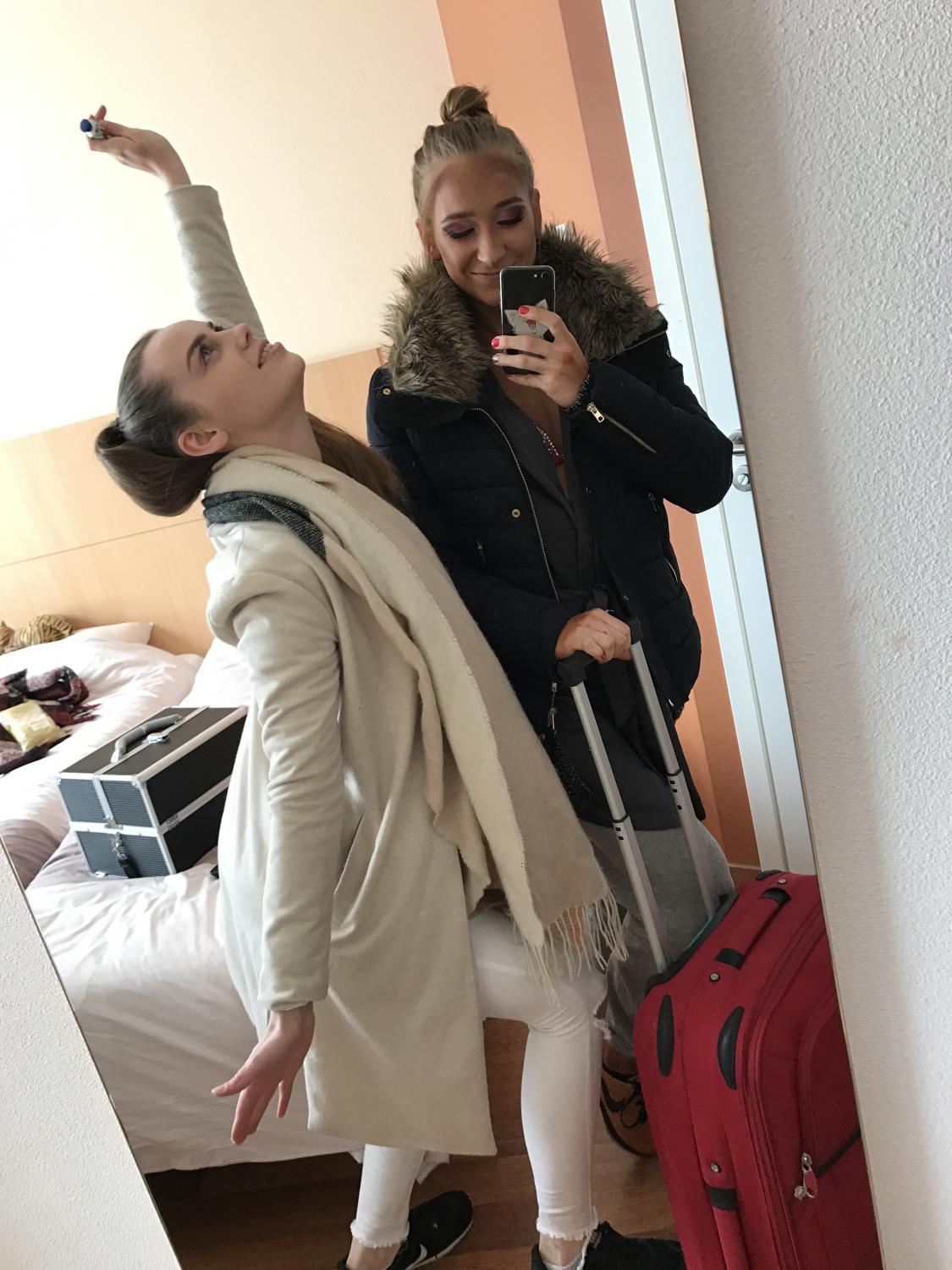 Peale hommikusööki suundusime hotellituppa, kus sain näkku korraliku meigikihi ja esimese kihi grimmi ning oligi registreerima minek. Võistluskohas saime kokku Õnnelaga, kes oli meid seal juba ootamas ja täitsime ära registreerimislehed. Kohe, kui registreeritud saime, suundusime me naiste garderoobi ja hakkasime kannatlikult meie lava-aega ootama. Inglise keelega polnud seal kahjuks midagi teha, paar nooremat korraldajat vaid suutis veidi aru saada ja infot jagada, aga põhi info liikus siiski leedu keeles ja parimal juhul vene keeles. Õnneks sai Õnnela venekeelega veidi paremini hakkama kui mina ning saime vähemalt aru, kui on aeg lavale minna