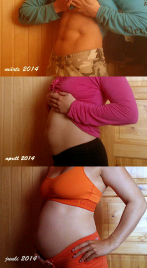 Trennid kulgevad ikka rütmis 3x terve keha nädalas. Selili harjutusi enam teha ei taha, ebamugav. Kükk (lai täiskükk, neutr. ja kitsalt ei anna enam teha) on kavas täiesti sees, jätkuvalt 30-40kg- ga seeriad. Jalapress samuti sees, jalad koos teha ei kannata, aga ühe jalaga kordamööda küll. Harjutusi vahetan igas trennis ja lihased saab üsna tihti ka valusaks. Trennipäevadel olen lühendanud ja intensiivistanud aeroobset, mida õues teen, saalivabadel päevadel võtan ette pikema ja rahulikuma ringi. Kaalu juures +7kg (hetkel 74kg), isu ja söödavad kogused hakkavad vaikselt vähenema paralleelselt kõhu suurenemisega- pole lihtsalt enam seda ruumi, kuhu söök mahutada kõhus