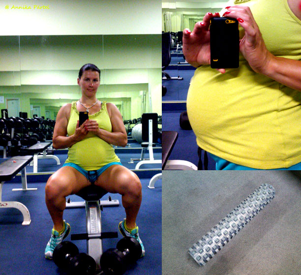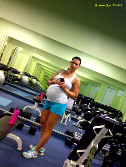 Umbes samal käisin veel viimaseid päevi enne dekreeti tööl, tavaliselt 12h järjest ja 3-4 päeva jutti, ehk siis koju jõudsin ööseks magama ja hommikul vara kohe tagasi-sellele järgnes 2-3 vaba päeva. Öövahetused olid lõppenud kuskil 1-2 kuud enne seda (2 päevast ja 2 öist vahetust järjest suutsid mu vererõhu 180ni kergitada, mistõttu arst keelas totaalselt öötöö), aga ega see erilist ei muutnud, sest pidevalt väsinud olin ma ikkagi. Trenne tegin stiilis ülakeha, alakeha, lisaks töövabad päevad veetsin kõik saalis, tööpäevade õhtuti väntasin kas tööjuures või kodus veloergomeetril, sest istuv töö, ametliku lõunapausi ja seega ka enese liigutamise võimaluse puudumine kippus tööpäevade lõpuks jalgadele hakkama. Kaal oli samal ajal umbes kiloke-paar kergem ja vööümbermõõt ka väiksem.