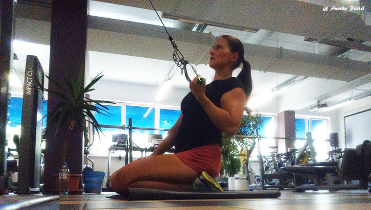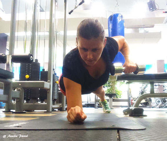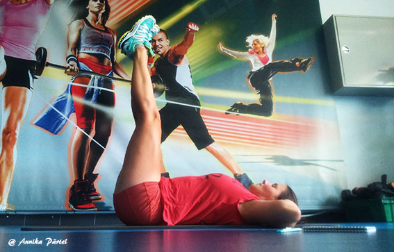 Novot eile õhtul läksin saali kindla plaaniga teha kähku ära õla ja kõhu trenn. Olin päev otsa aias toimetanud, lastega pikalt jalutamas käinud ja olin juba tegelikult üsna väsinud. Kui teha oli jäänud veel 1 õlaharjutus ja 2 kõhuharjutust, siis hõikas Mart äkki mulle rühmatreeningute saali ukse vahelt: “Noh Annika, tuled ka? 30 minutit, teeme kõhtu ja natuke muud ka! ” Mõtlesin, et nohh okei, 30 min pole ju pikalt ja kõht oligi nagunii veel tegemata, astusin saali uksest sisse, võtsin paar ketast ja kummi ja mati. Oi jaa, ja vot siis hakkas pihta- peale paari harjutust olid nii kõht kui tuharalihased krampis