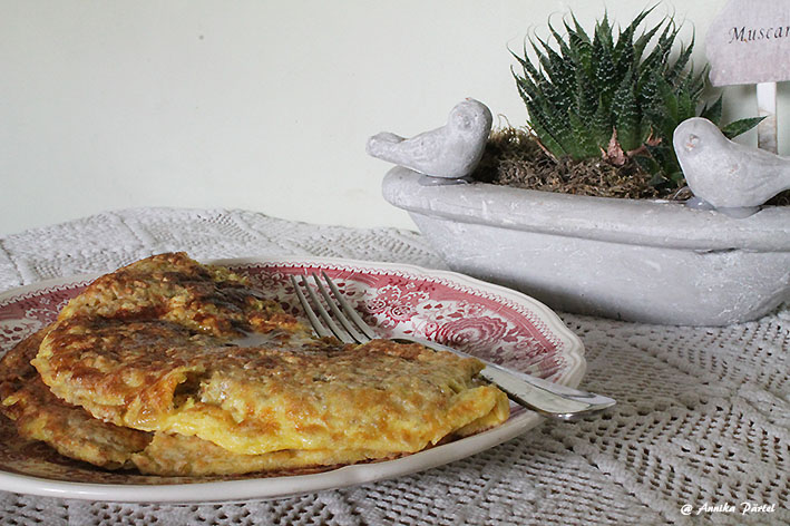 Täna on plaani minna jõusaali. Hommikul varieerisin veidi toiduga ja tavapärase pudru asemel tegin kaerahelvestest, munast ja piimast hoopis ühe suure pannkoogi.