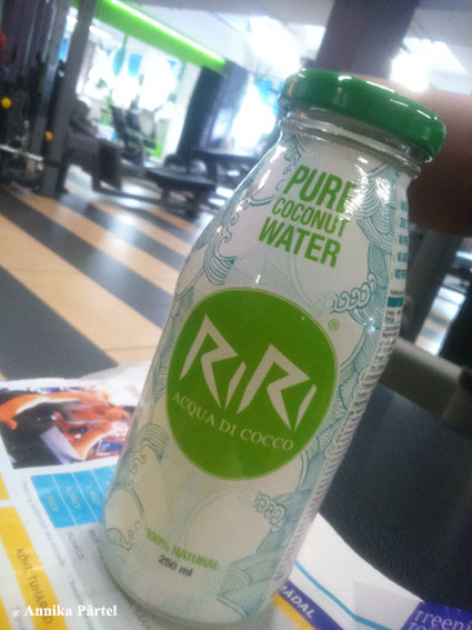 Kuna toidulisandeid ma praktiliselt ei tarbi, siis trennis viimasel ajal olen avastanud kosutava kookosvee (naturaalne isotooniline jook)- maitse on väga magus, samas trennis on seda siiski päris hea rüübata. Pudel on õnneks väike, jooks rohkem, hakkaks liigne magusus vist vastu