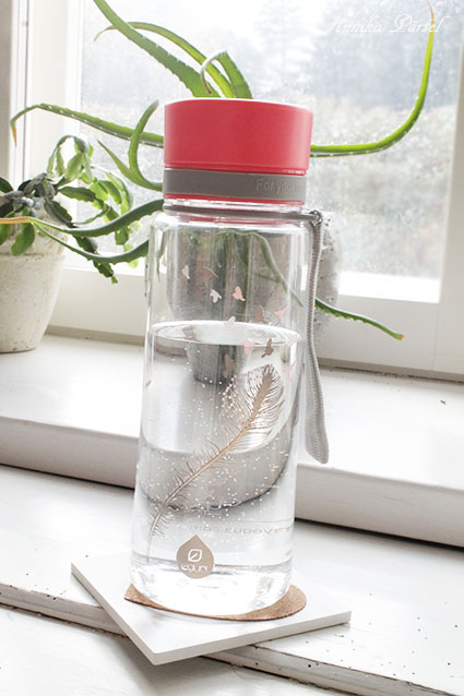 MemberAvastasin hiljuti, et ma ei joo peaaegu üldse päevas vett- no kas ununeb, pole aega või lihtsalt ei viitsi… Kohv, tee küll, aga mitte vesi. Et see ikka koguaeg silme ees oleks, ostsin ilusa pudeli- see ei jää kindlasti märkamata ja niisama kapi peale seisma!