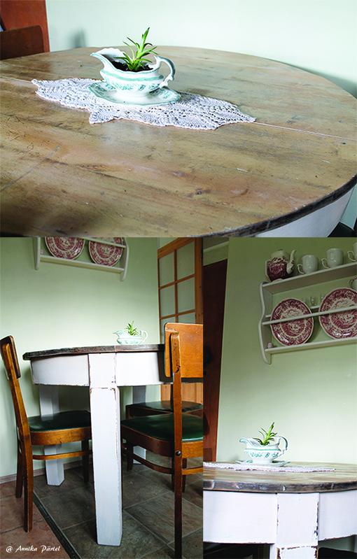 MemberOh! Mul ka selline sarnane just restaureerimisel. Ainult, et käib veel lahti suuremaks lauaks. Hetkel oleme vana laki laua pealmisest plaadist happega maha saanud…..maru mürgine töö. Ja nüüd mõtleme mis edasi….kõige lihtsam tundub tõesti valgeks värvida.
