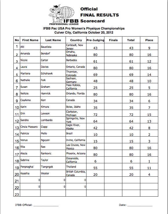 Scorecard for the placements & roundscores – http://npcnewsonline.com/wp-content/uploads/2012/10/FtBikini-709×1000.jpg