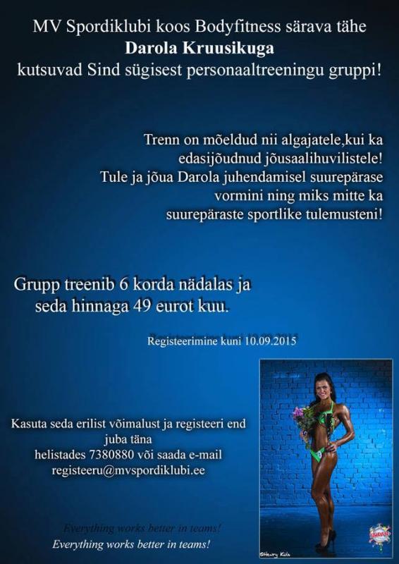 soovitan Darolat, kes hakkas Tartus MV-s võistelda soovijatega tegelema. Põhiline on regulaarselt treenida ja poseerimist jõuab siis enne võistlusi harjutada.