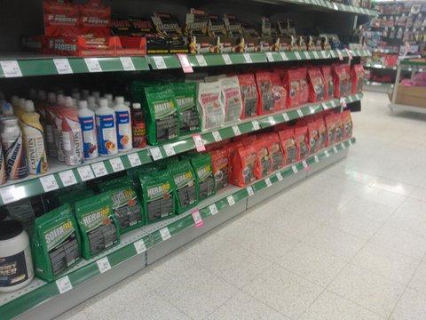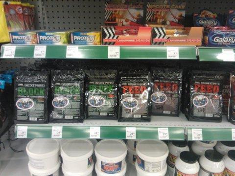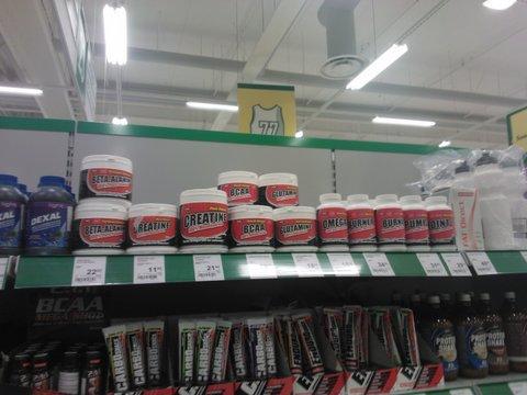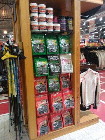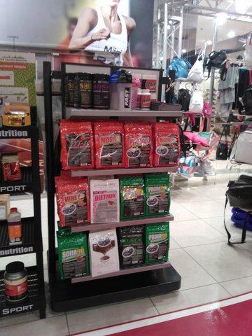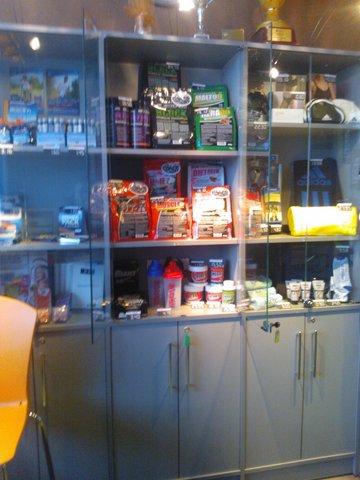 Kõik väga ok, väljapanek ilus nagu sportlandites ikka. Nii kui uksest sisse astud, hakkavad kohe tooted silma. Meie reklaamplakat ripub, Oti reklaambänner (“minu sport on kulturism”) ripub kah meie toodete juures. Müüjad olid teadlikud sellest, mida nad müüvad ja oskasid mulle iga toote kohta midagi natuke rääkida. Kleepisin Pro sarja, wheyd ja dietmixi, sest kõik ülejäänud pidavat populaarne kaup olema.