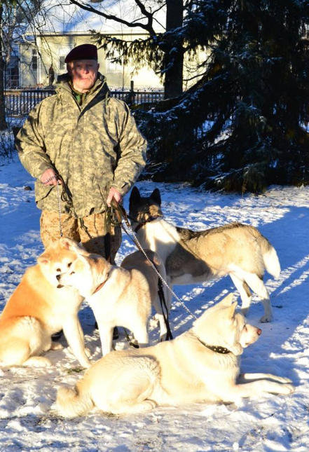 Olev oma karvaste sõpradega koduaias 2015 a. talvel.