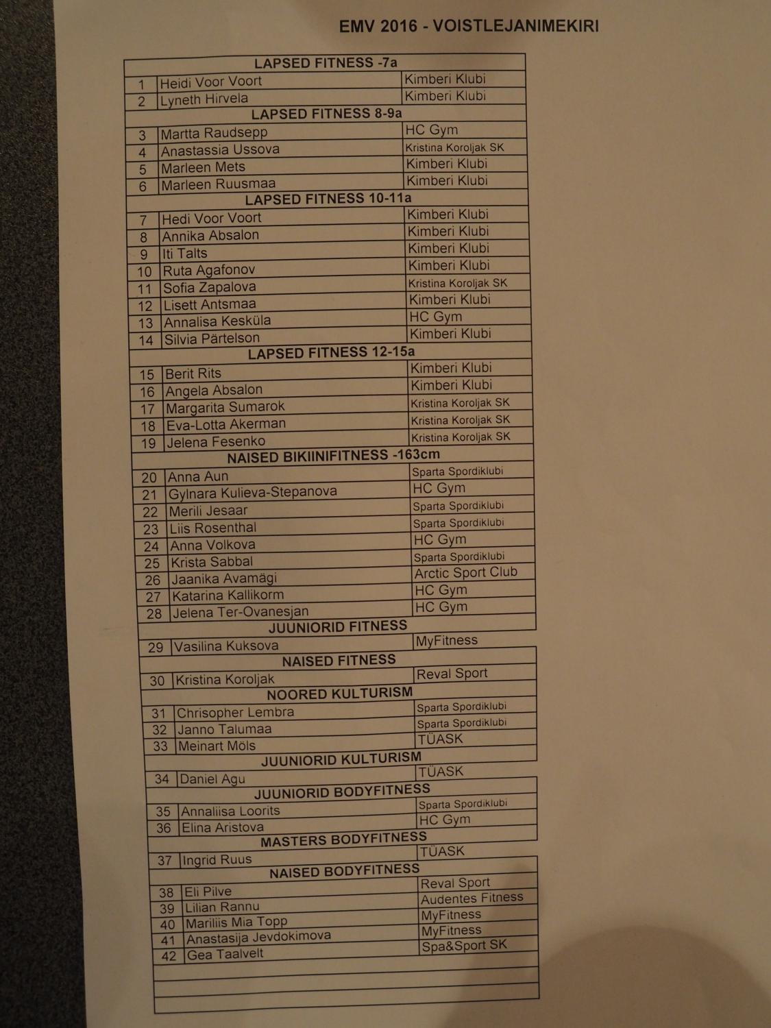 Eesti Meistivõistlused Kulturismis ja Fitnessis 2016 – Lisatud protokoll ja Galerii