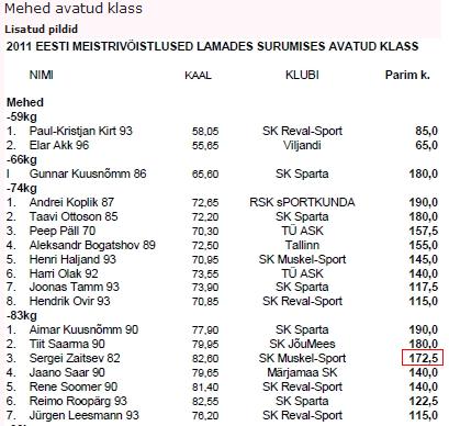 ” srcset=”/uploads/emoticons/smile@2x.png 2x” width=”20″ height=”20″>Uudises üks korralik viga sees. Taavi ei surunud -120 kaalukategoorias uut Eesti rekordit 245 kg-ga. See on 20 kg vähem kui kehtiv rekord, mis on Kaido käes.