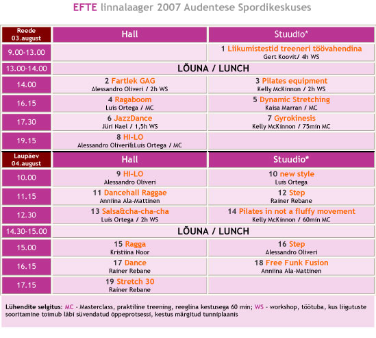 Alessandro Oliveri Fartlek GAG oli minu jaoks ysna revolutsiooniliste ideedega aeroobikatunni ylesehituse osas. Anniina Ala-Mattineni Dancehall Raggae oli nagu v2rske tuul