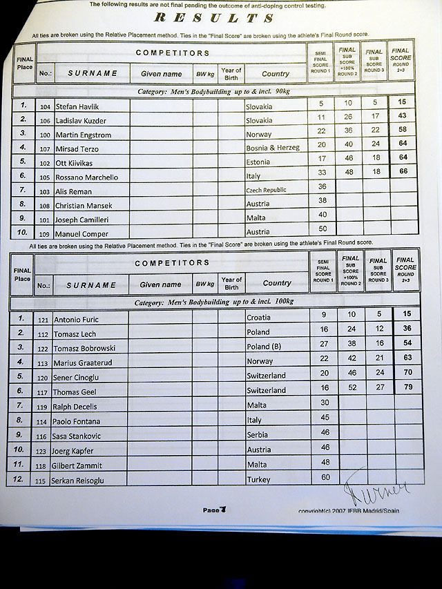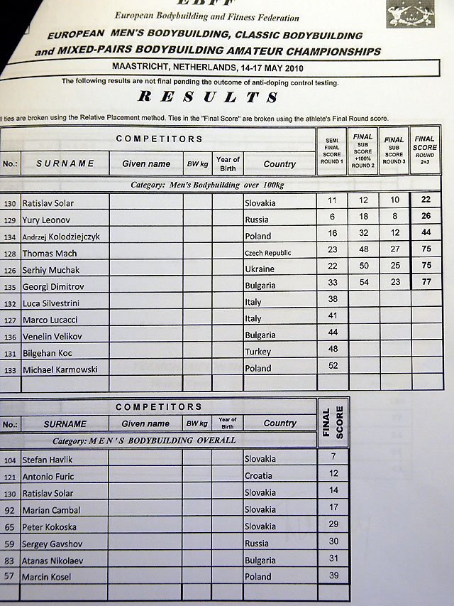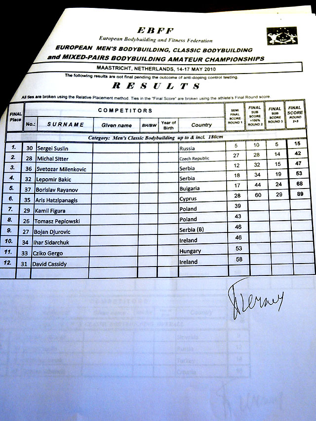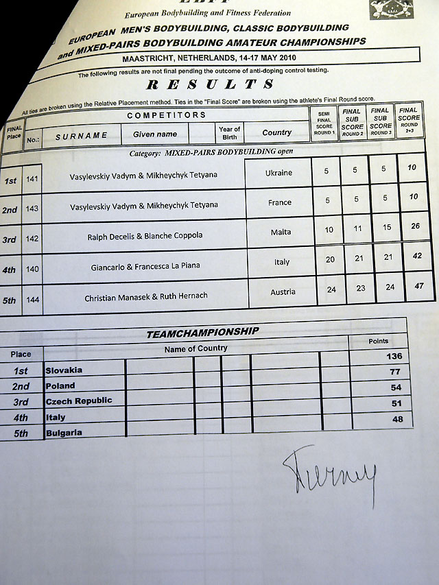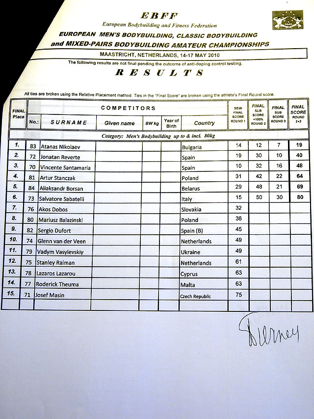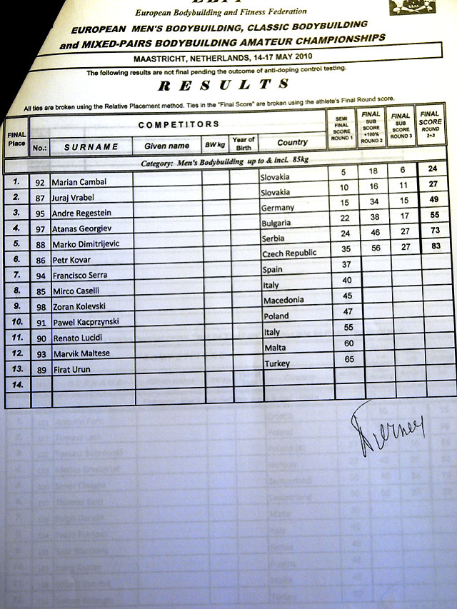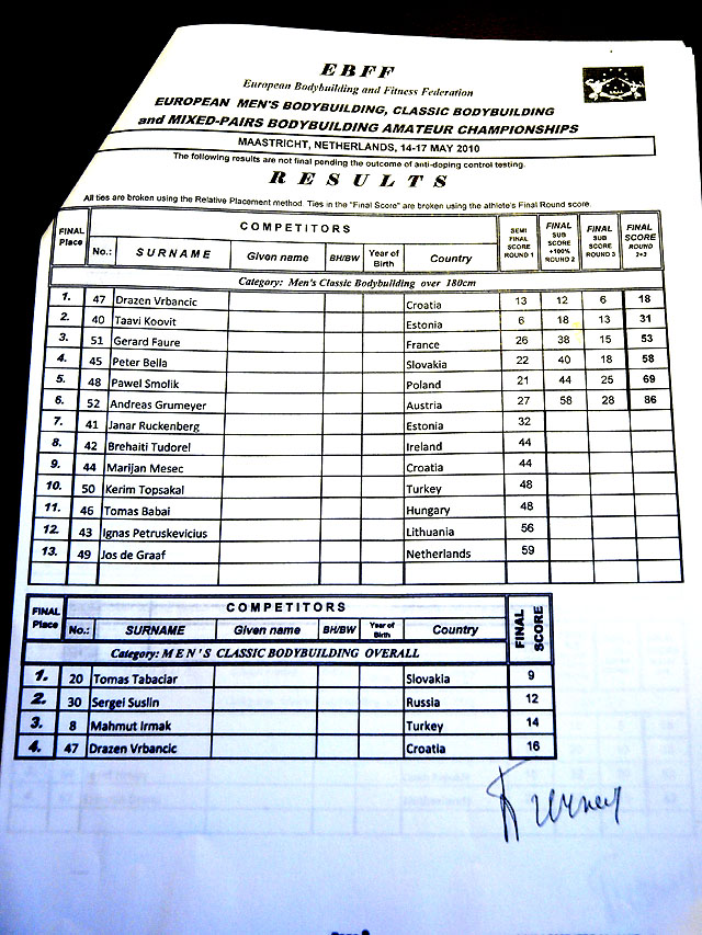 Sain ka lõpuks arvuti taha. Võistlus on läbi ja esimesed emotsioonid ka läbi elatud. Tulemused siis sedakorda sellised, päris rahule ei saa jääda kuid nurisemiseks ka põhjust ei ole 3 meest ikkagi EM finaalis! Olgu öldud, et esimese päeva põhjal olid meie 3 meest medalitel (Taavi võitis esimese päeva, Vähk kolmas ja mina 3 koht). Järgmine päev oli teine kohtunike paneel ja tulemused teised, nägin ise meie meeste etteastet mõlemil päeval ja meestele midagi ette heita ei ole (ei andnud keegi vormis küll järele).