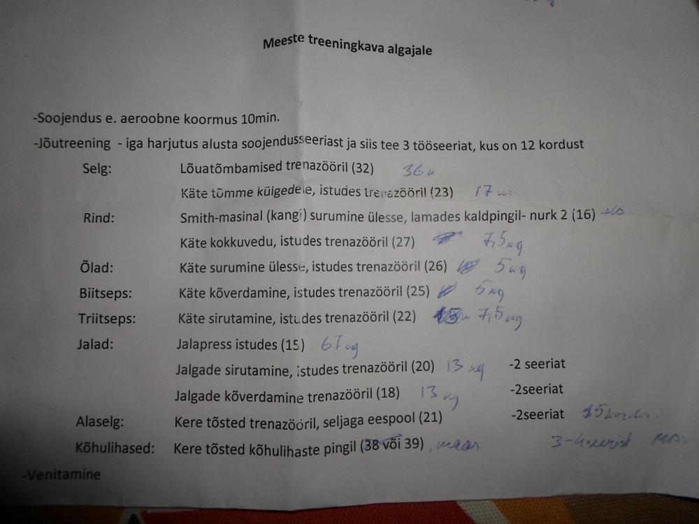 Mina treenin juba tükk aega ühe sama kava järgi, nätieks.