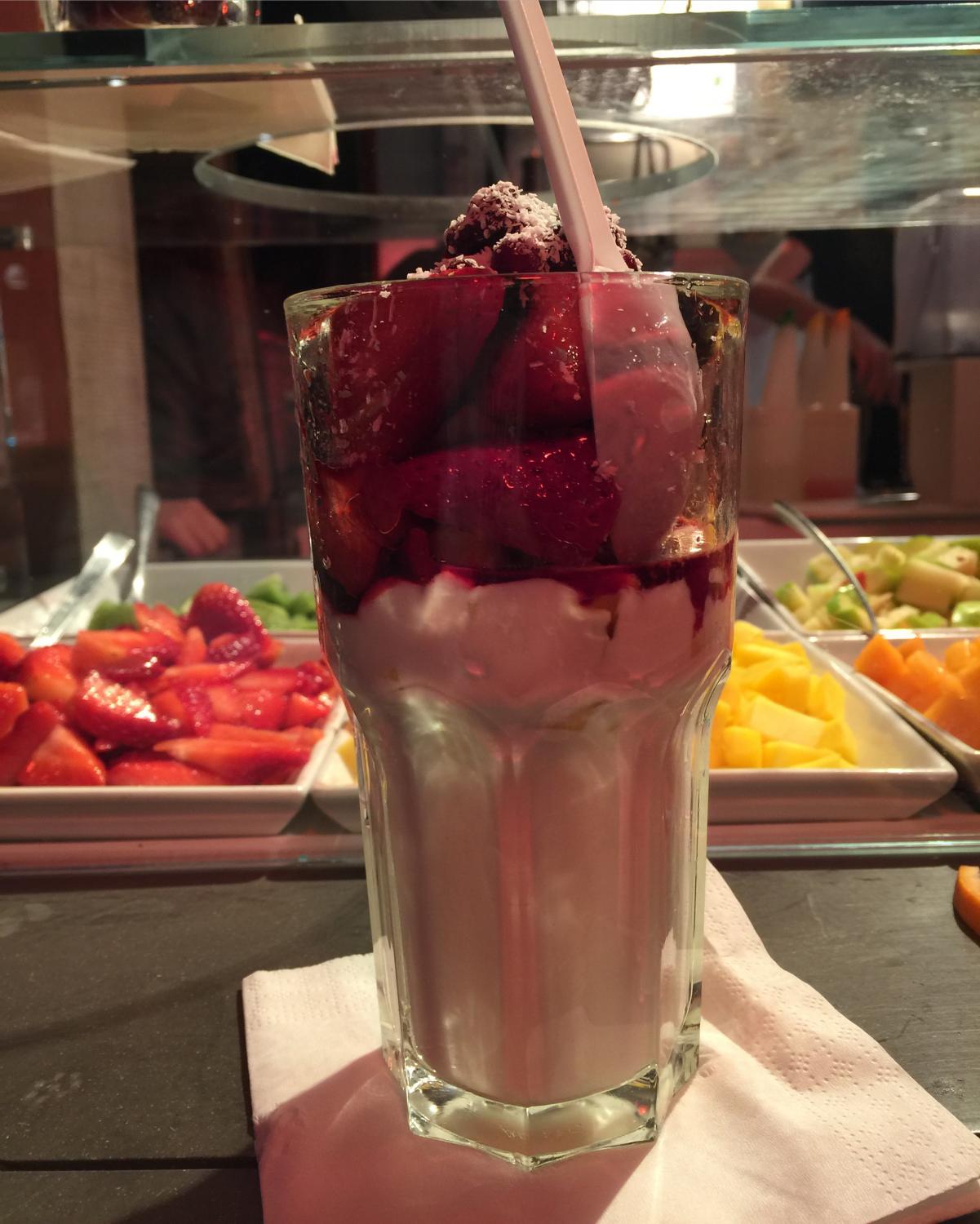 )) tõin palju koju ka, sest meil selliseid asju ei müüdagi. Üks kord õhtul lubasin endale rasvase joogurti marjadega, arvan, et sõbrannad ei saanudki lõplikult aru millist naudingut sain süües seda joogurtit