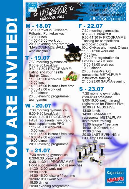 Ja Sinuga, kes Sa hoolid enda kehast ja soovid nädal aega olla koos inimestega, kes samuti hoolivad enda figuurist, tervisest ja armastavad jõusaali, kohtume juba juulis Saaremaal, Fit.Camp Orissaare 2011 raames!