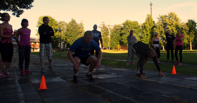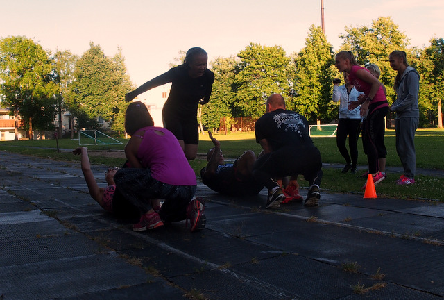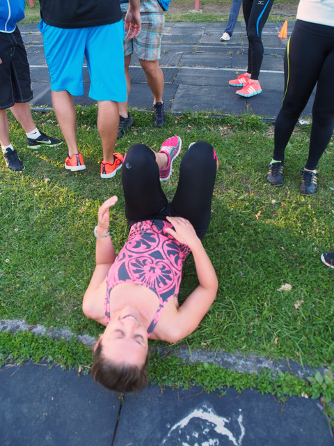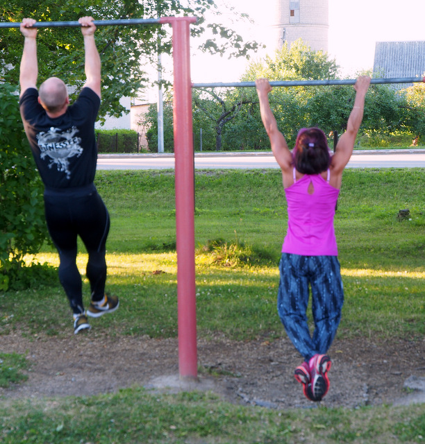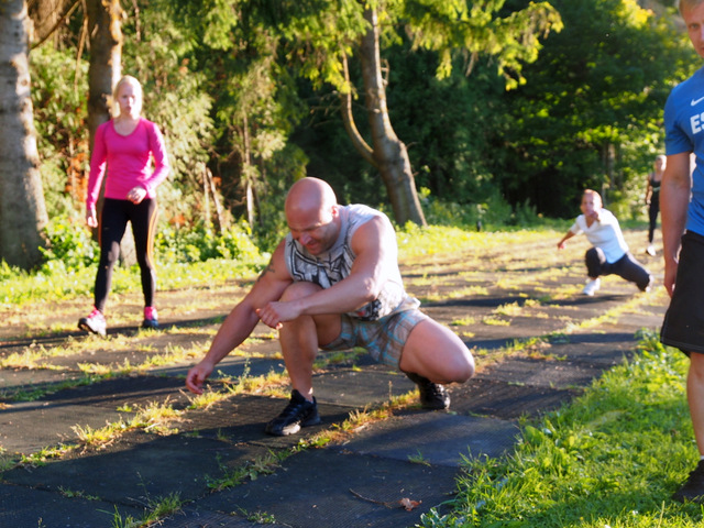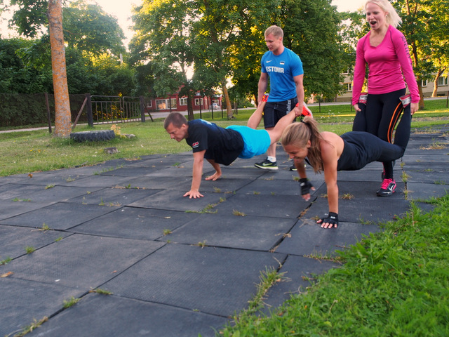 Ergutustiim hoos, Priit ja Triin kõhulihaseid tegemas.
