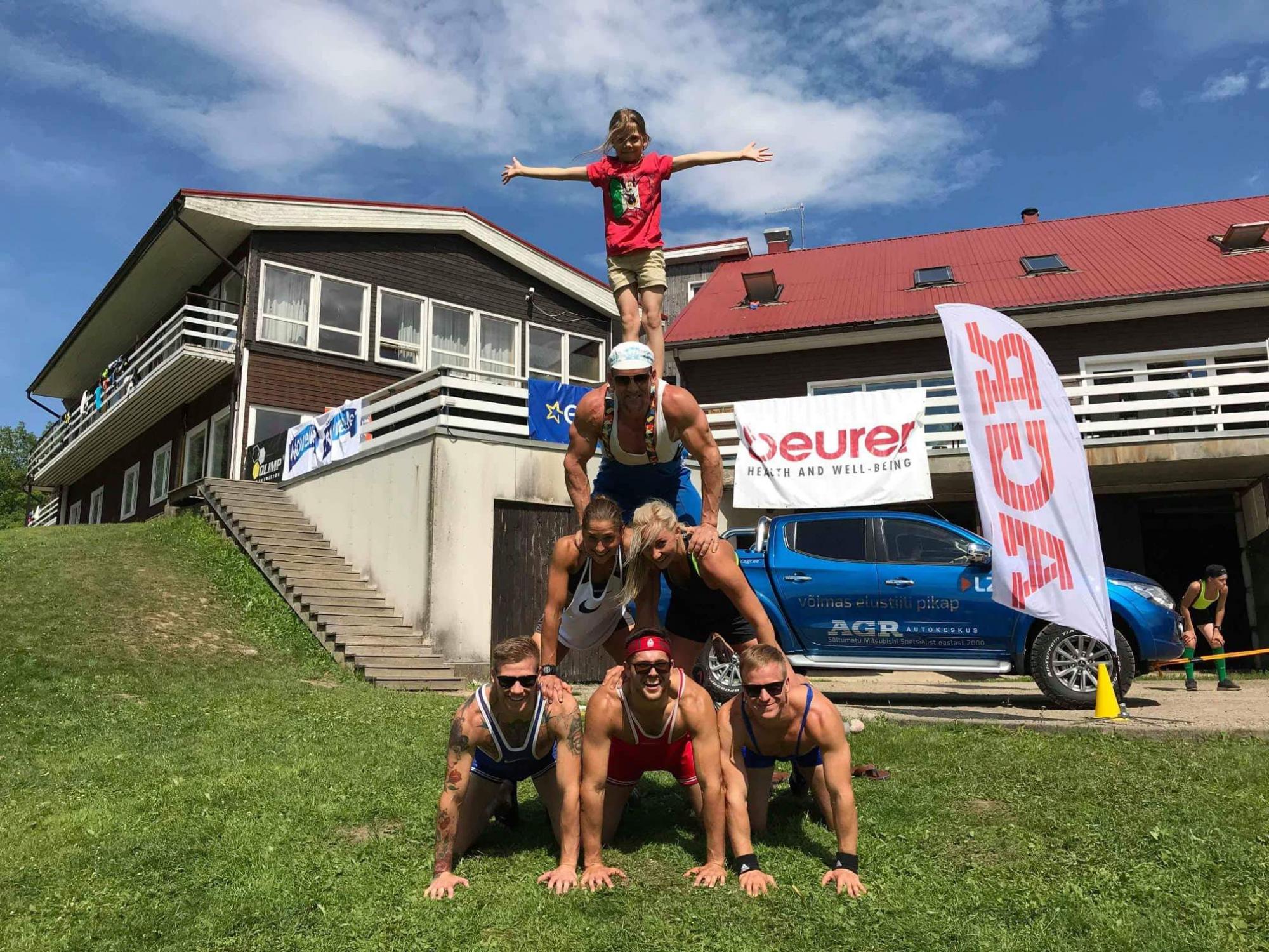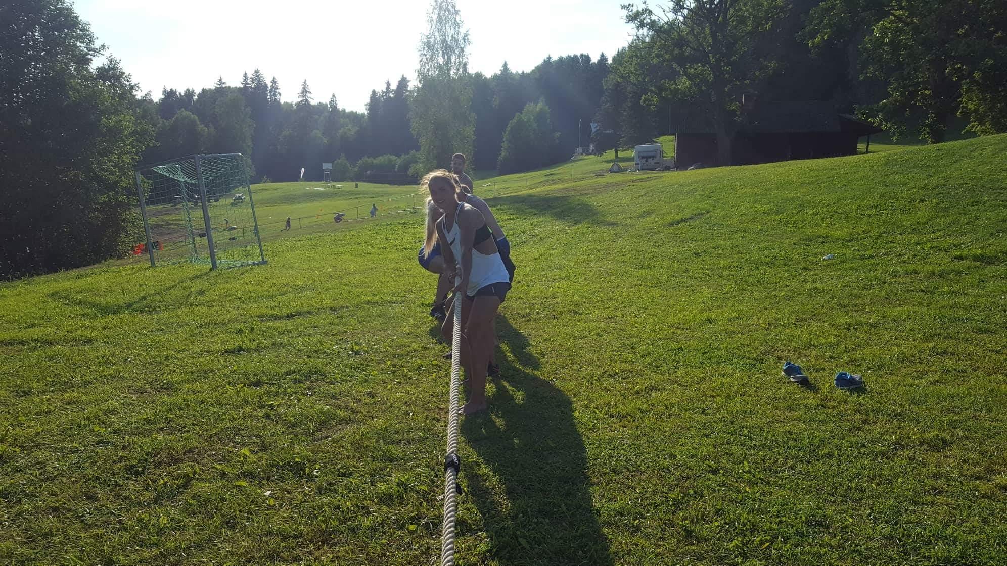 Esimeseks alaks oli takistusrada, mis oli vist läbi aastate kõige “jõhkram” sest tegemist on mägise maapinnaga ja joosta+ harjutsi teha võtab ikka päris kiirelt võhma välja. Lisaks veel hantli/sangpommi surumine õlalt, armlifting, rahvastepall, köievedu ja võimelmiskava, mis lõppeb püramiidiga.