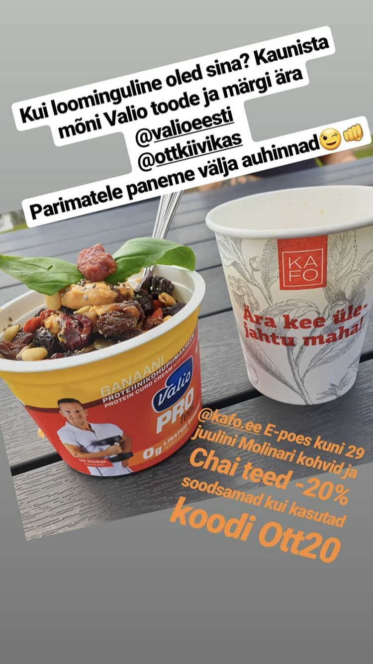 200g kohupiima (kasutasin Valio ProFeel proteiinikohupiimakreemi – banaani oma sobis kõige paremini aga vaarika omaga on ka hea)