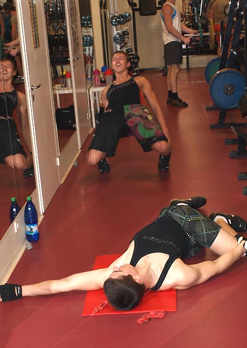 Kui ma jõusaali uksest sisse astusin, hakkas silma oma kõhulihaseid punnitav atleet Sander.