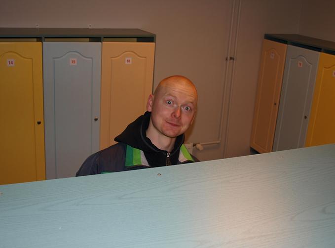 Kuulsin, et keegi kolistab tühjade õllepudelitega teises riideruumi otsas. Jube hais tuli kuskilt. Kargasin kapi otsa ja selline mees vaatas mulle uljalt vastu!