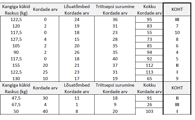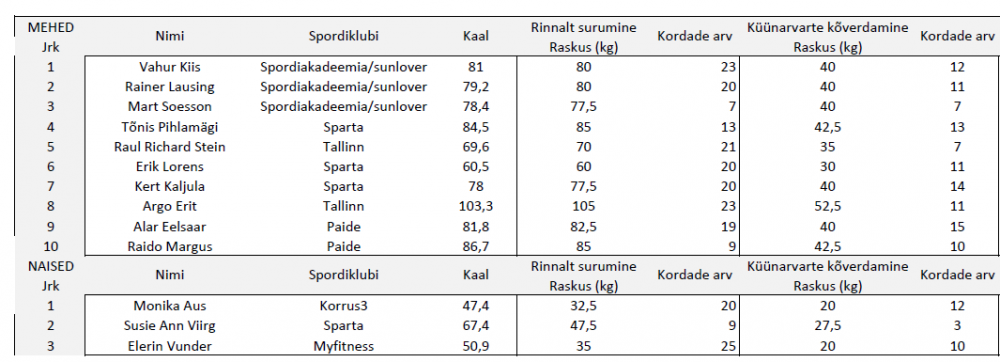 Raido Margus kaalus 86,7kg ja kang oli 85kg, kuigi peaks olema ju 87,5kg. (87,5 – 86,7 = 0,8kg; 86,7 – 85 = 1,2kg ehk 87,5kg on vähem maad kui 85kg)mai 11, 2015 at 8:54 p.l. #380608Martin Mynz