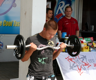 Kõige tihedam oli konkurents meeste seas (10 võistlejat), kus eelvoorus oli kangil 23,5 kg ja finaalis 28,5. Finaali pääses 6 paremat meest ning lõplik paremusjärjestus kujunes selliseks: